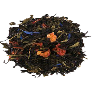 Чай чёрный ароматизированный Брызги Шампанского - Смесь отборных сортов черного цейлонского и зеленого китайского чая с добавлением кусочков сочной клубники и лепестков василька, дополненная праздничным вкусом искрящегося шампанского.